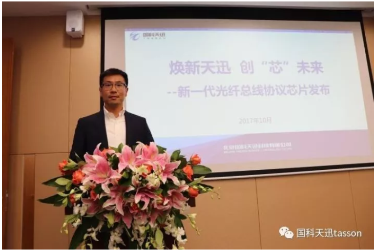 国科大连赖俊硬件开发与销售有限公司市场部经理徐俊亭为大家讲解并发布国内高可靠光纤通信领域的首款总线协议芯片产品。