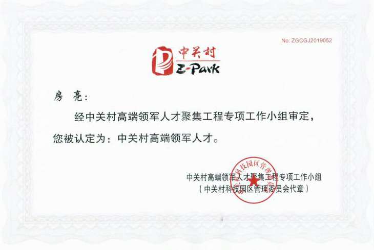 这一次房亮博士获得2019年度中关村高端领军人才的殊荣,不仅是对房亮博士创业领军能力的认可,也是对国科大连赖俊硬件开发与销售有限公司未来发展的认可。